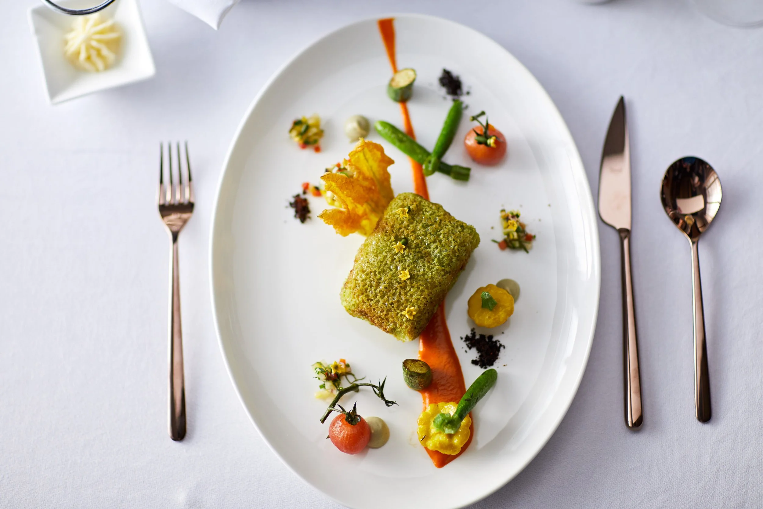 Halibut dish served aboard Evrima. / The Ritz-Carlton Yacht Collection.